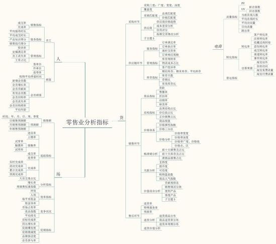 數據分析是個很複雜的工程,需要業務和分析技術兩塊知識。 首先,企業的分析主要分為管理分析和經營業務分析,分析整體的思路是:明確業務場景——確定分析目標——構建分析體系——梳理核心指標。 因為每個企業/行業的業務不同,分析體係也不同,這裡主要說一下零售電商,按照不同的分析場景來探討下。 以電商為例,常用的業務分析場景有銷售、商品、渠道、競品、會員等等,而商品可進一步細分為商品的庫存、商品的利潤以及關聯銷售分析。在整個業務分析體系中,電商行業遵循“人貨場”的思維邏輯,其指標可這樣劃分: